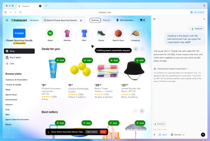 Jedną z najważniejszych funkcji Atlas jest tryb agenta, dostępny obecnie tylko dla użytkowników wersji Plus i Pro. Dzięki niemu ChatGPT może podejmować działania w imieniu użytkownika, takie jak rezerwacja lotów, edycja dokumentów czy organizacja codziennych zadań.